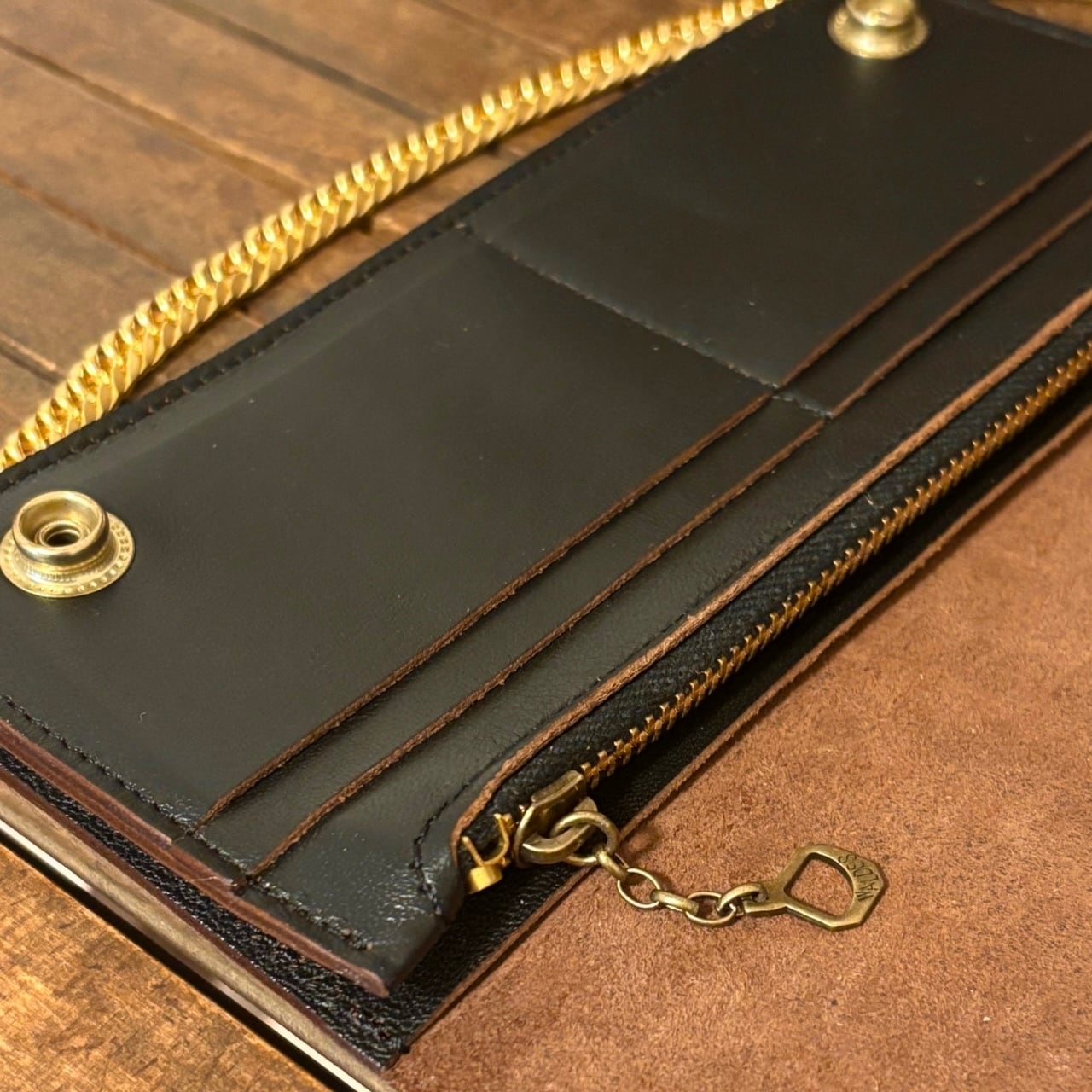 小銭入れにはwaldesの菱形ジッパーを使用し、上止めはコの字止め、下止めはパンツ止めでヴィンテージスタイルに仕上げております。