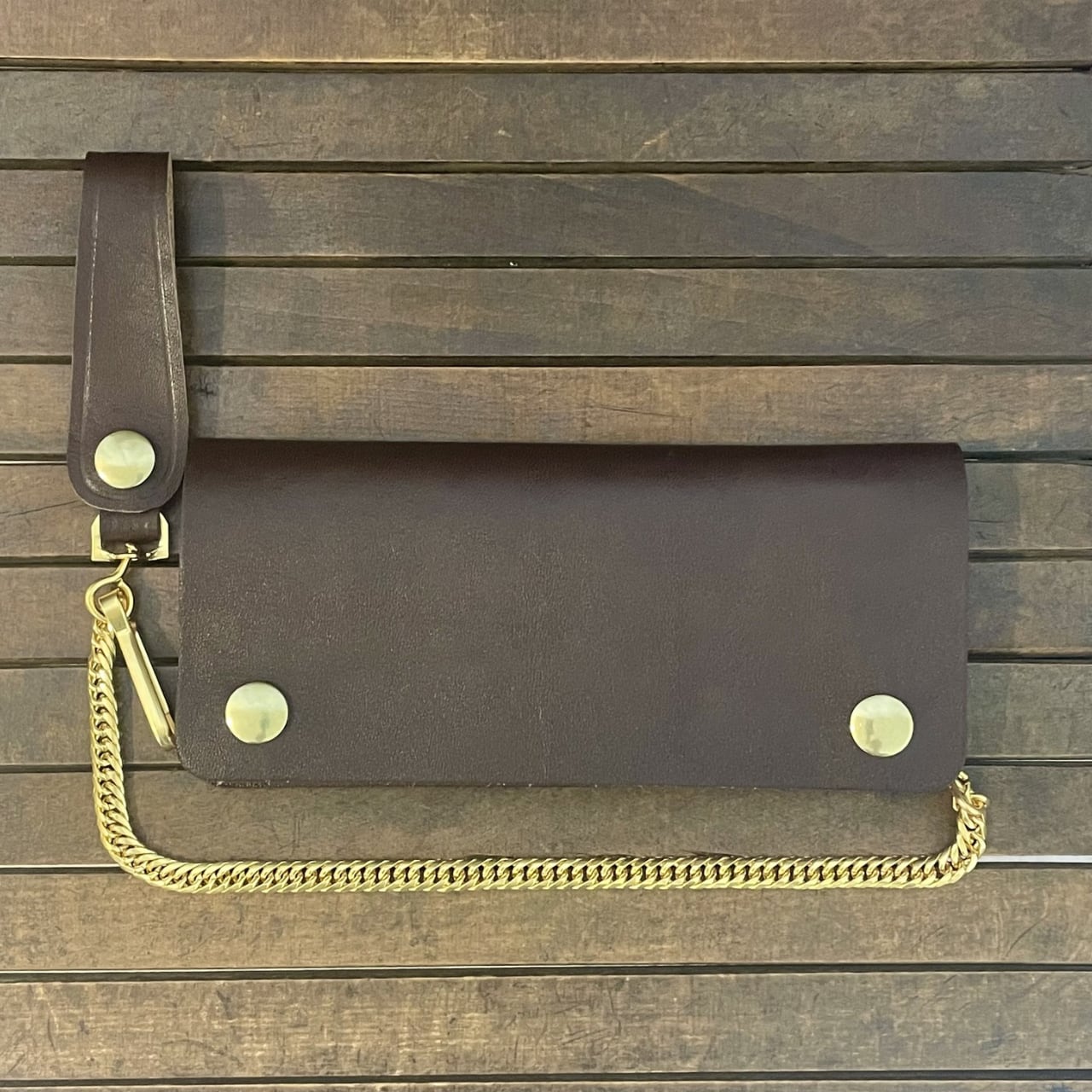 フロントに4ヶ所のカードポケットを配置し、小銭入れと札入れそれぞれ1ヶ所のホースハイドトラッカーウォレットになります。